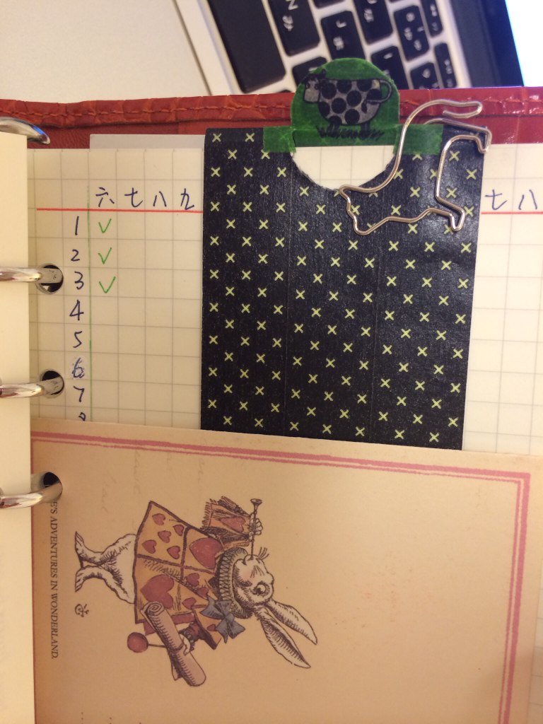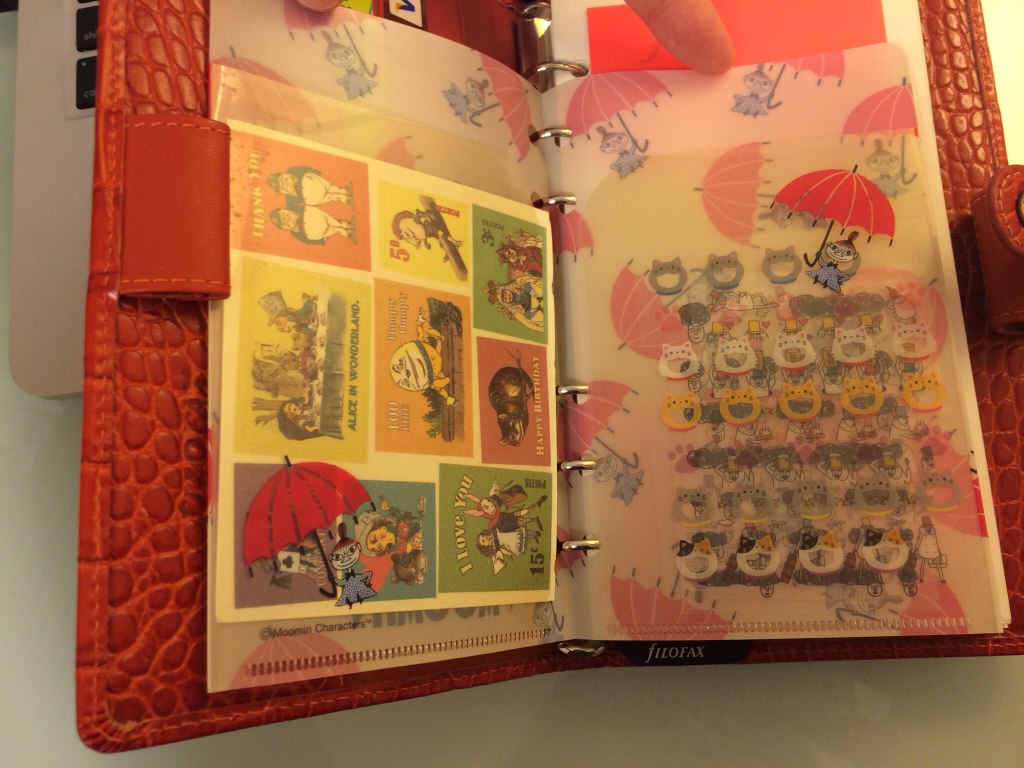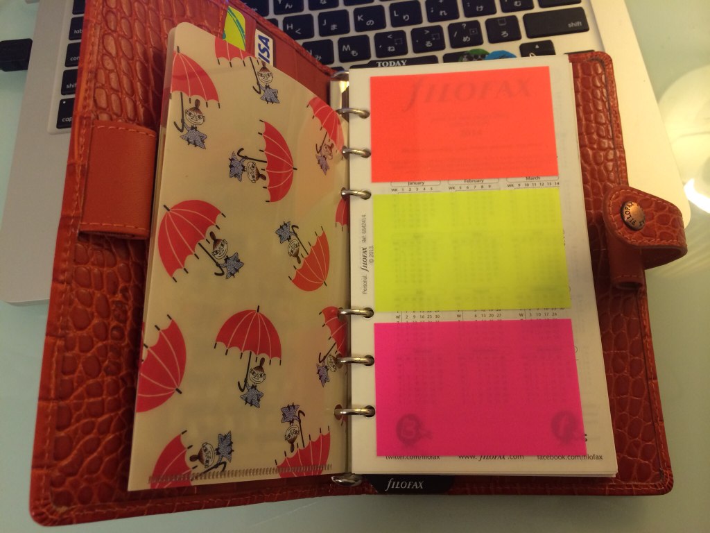 compact这个型号比较窄,标签位于右侧的分类标签页不好用,会顶到笔夹。这是自制top分类标签。有时也用信封袋来分页。