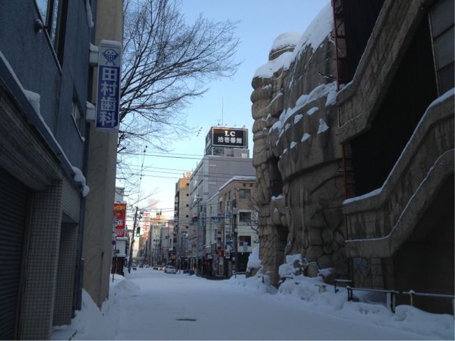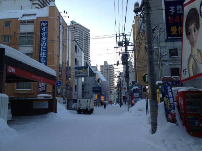 从缆车口走回站前其实才1600米,平时的话当然不在话下,不过函馆的道路冰雪很多,而且属于那种滑溜溜的冰路,所以走了差不多40分钟。